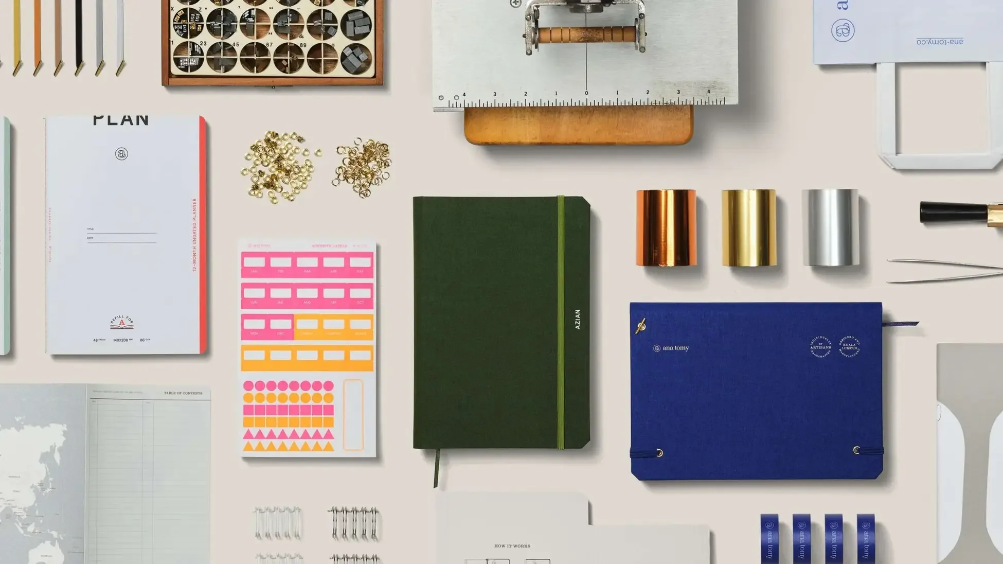 第一次聽到「Ana tomy」這個名字時,覺得饒富趣味。它取自「Anatomy(解剖學)」的諧音,同時也是創辦人對文具的哲學:一本完美的筆記本,應該是可以被解剖、被分析,然後依照使用者的靈魂重新組裝的。