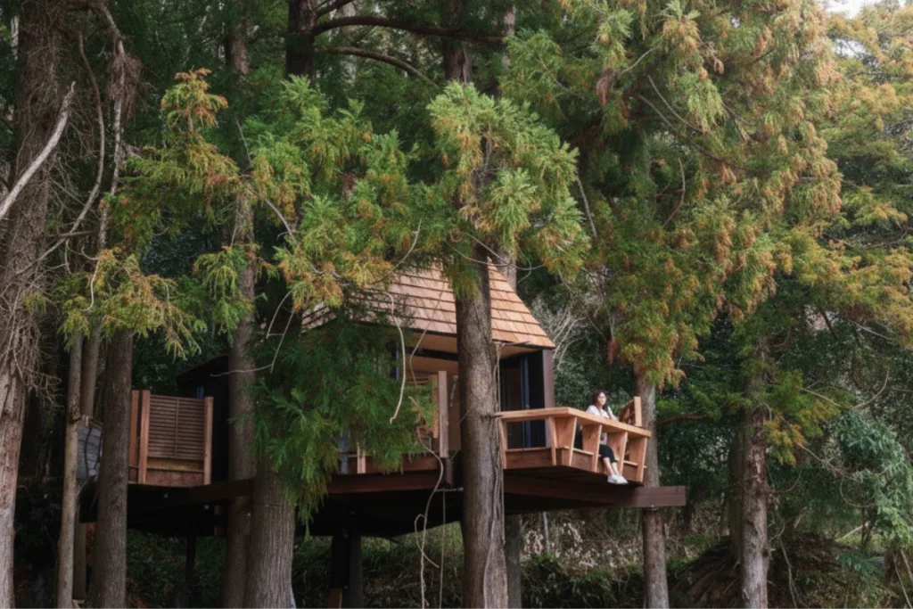 如果不惜工本運用天然木材,只為了打造一個讓人發呆的地方,聽起來是不是有點奢侈?但這正是和心村的浪漫。這座樹屋不是為了讓人拍照打卡,而是為了讓你換一個視角看世界。爬上樹梢,你可以像鳥兒一樣,感受樹木的呼吸,俯瞰這座里山村落的生命循環。
